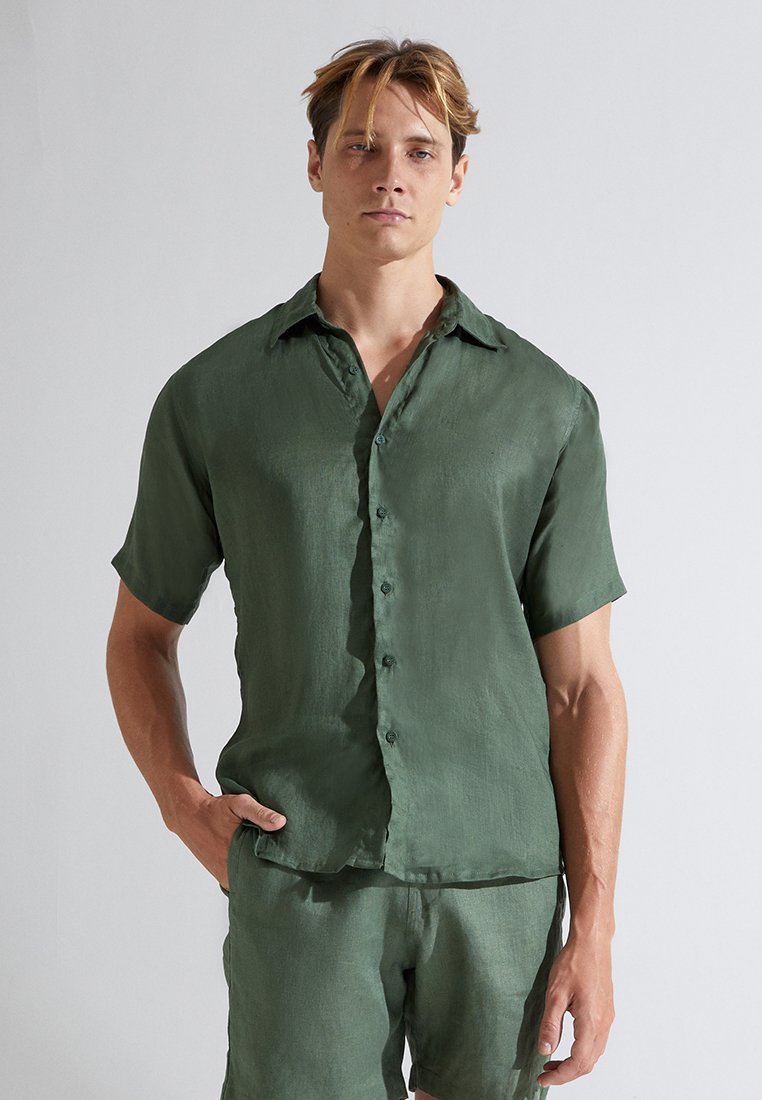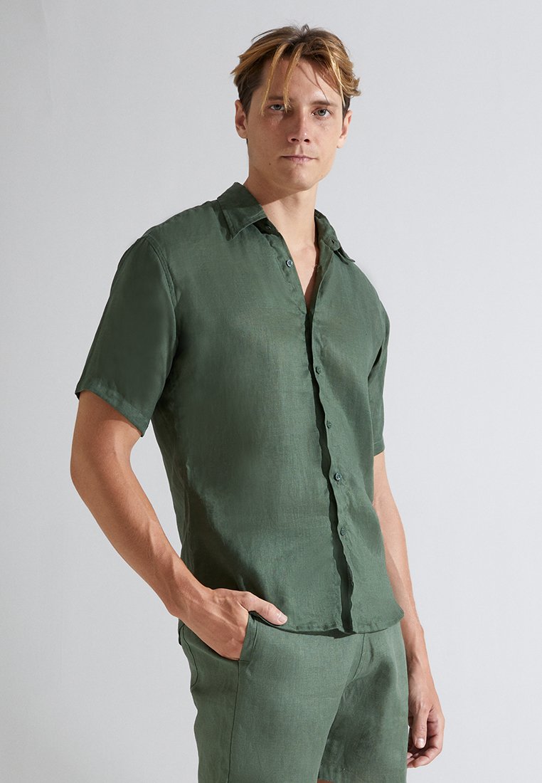 Be the first to review “Stockholm Pure Linen Shirt – Army”